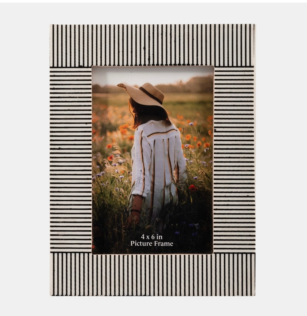 Hold on to the memories in style! This high quality frame can hold a 4" x 6" photo and comes in an etched line design in black and white. Show off your favorite photos by adding this frame to your desk, mantle, bookshelf, night stand or coffee table. Created out of mdf wood, polyresin and glass, this durable frame will be a great addition to any home or office space. It would also make a great gift for anyone in your life, either with a special photo already placed inside, or as a standalone gift. You can't go wrong with this gift for any special occasion!