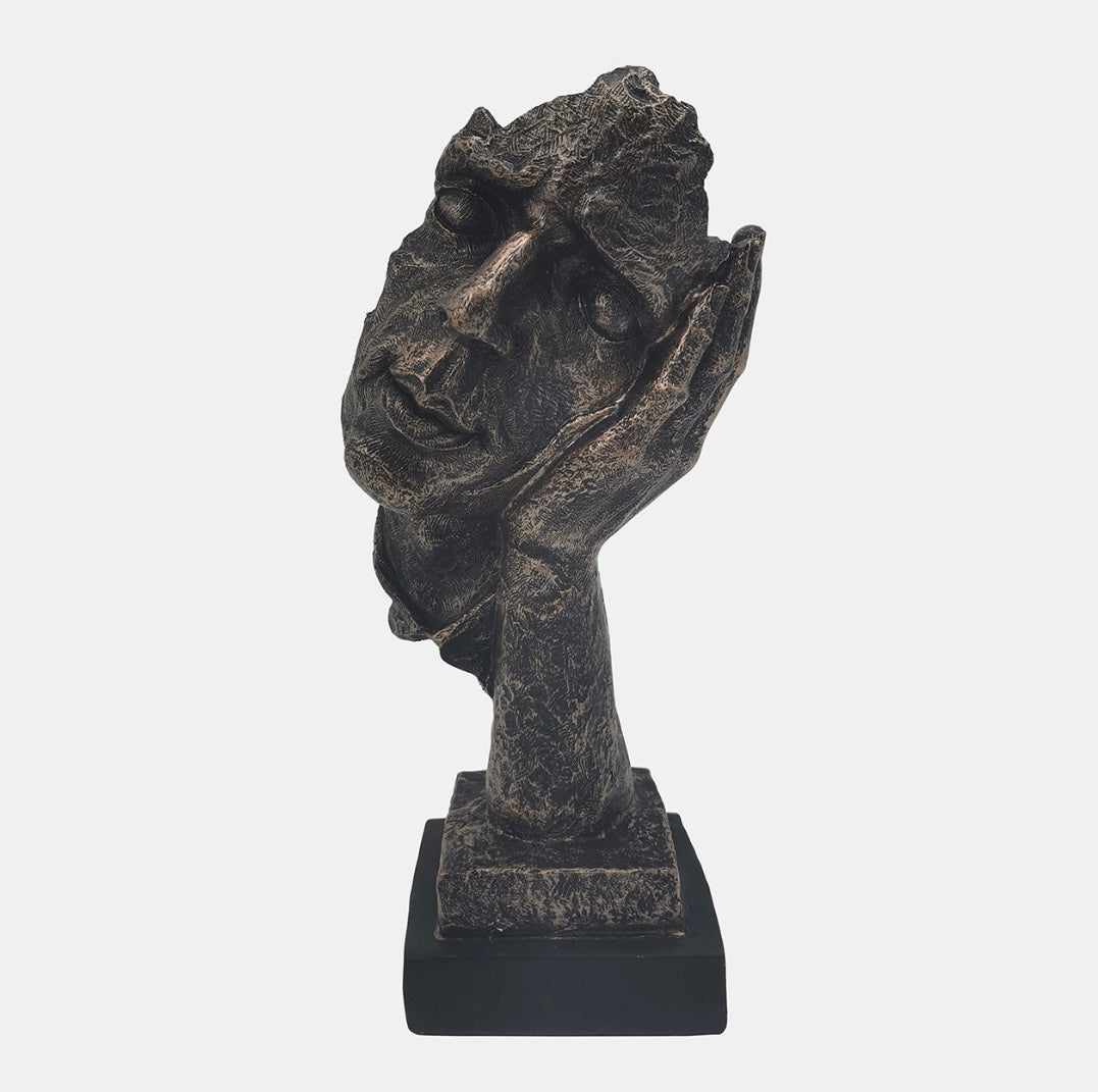 Add to your decor with the Bronze Resin Sleepy Head Sculpture. This figurine features a unique design that is sure to capture attention. Whether displayed on desks, or side tables in living rooms, or bedrooms, it creates a focal point of interest in any space.
